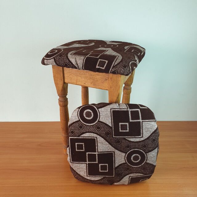 НАБІР: 4 ЧОХЛА З ПОРОЛОНОМХарактеристики: Розмір:для табуреток від 30 до 35 см. Кріплення: за допомогою резинки. Тканина: зносостійка меблева тканина Догляд: можна прати окремо від поролону